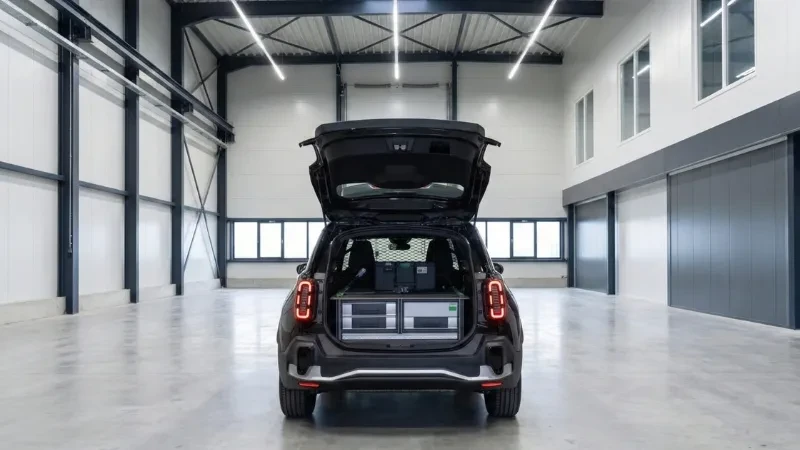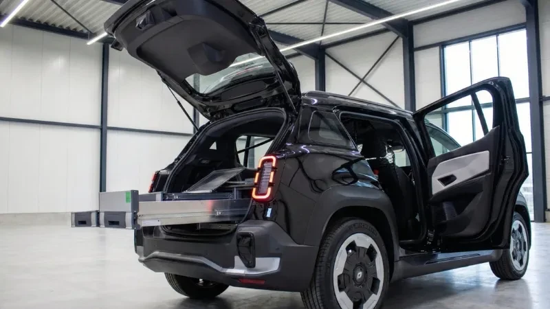Het ontwerp van de Renault 4 E-Tech electric Van is zowel retro-futuristisch als praktisch. Hij heeft een compacte vormgeving, een grote achterklep en oogt als de originele Renault 4 met zijn kenmerkende grille aan de voorkant en zijn iconische achterlichten. Met de R4 Van heb je gelijk toegang tot een groot laadvolume via de brede, lage achterklep.
